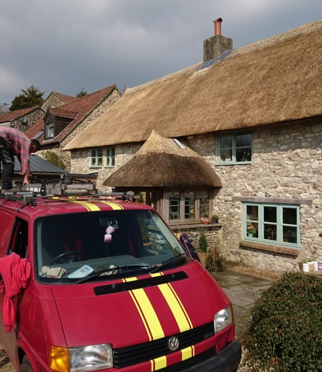 So here we are, home again, back thatching in Honiton and living with Widget’s wistful eyes begging to be let up on the sofa as she had been with my friend….I guess she had a great holiday too.